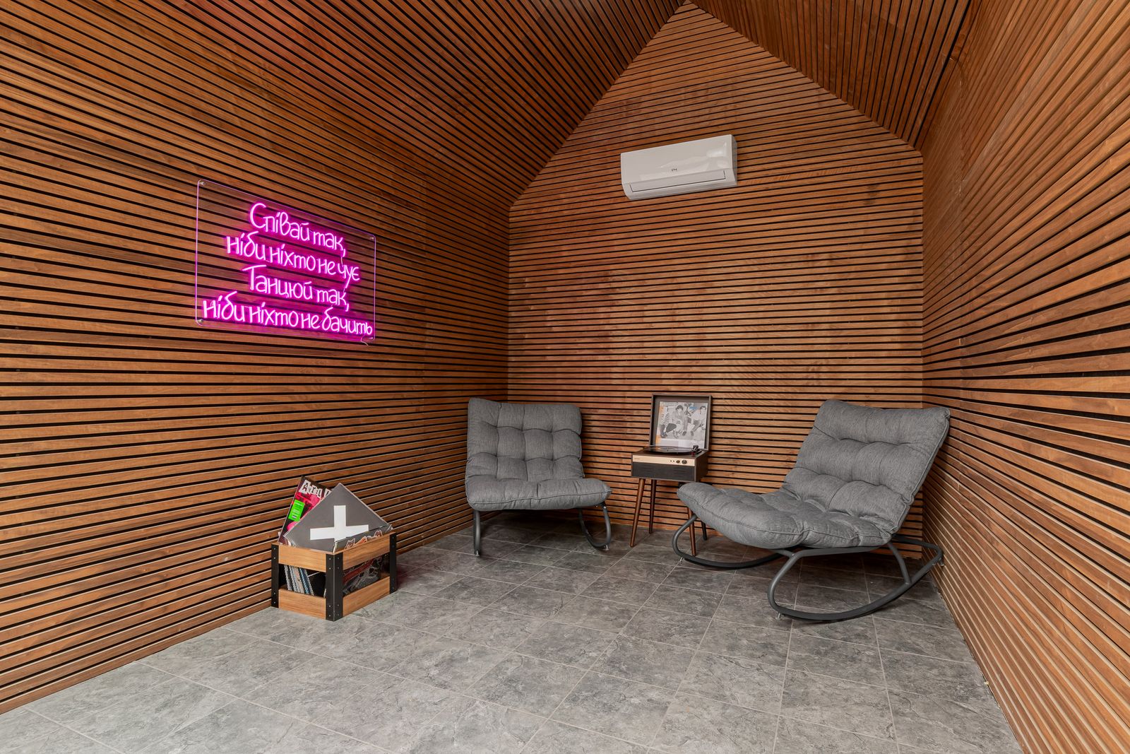 Просторий куточок для теплих спогадів та глибокого єднання з величною красою соснового лісу.